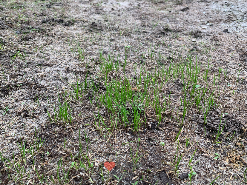 - Op de plek waar het zwembad stond komen voorzichtig de eerste grassprietjes weer boven