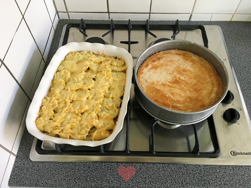 Johan zijn moeder is vandaag jarig en we schuiven aan voor het avondeten. Op tafel komen gebakken aardappels, bonne femme, schnitzels en sla. Smullen!