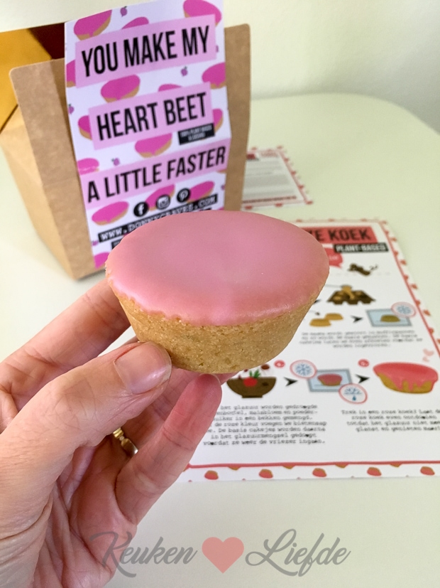 Ik krijg lekkere foodpost thuisbezorgd met roze koeken van Donny Craves. De koeken zijn 100% biologisch en plantaardig en het roze glazuurlaagje is gekleurd met rode biet en rozenbottel in plaats van luizenbloed. Hier word ik zo blij van! Ze zijn heerlijk.