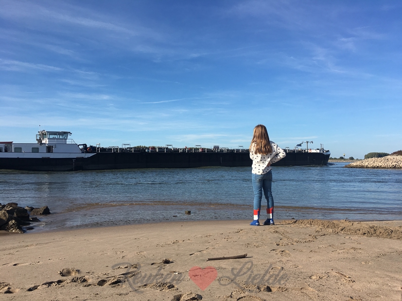 Het is een prachtige dag en Ella-Marie en ik lopen ’s middags even naar het waalstrand achter ons huis.