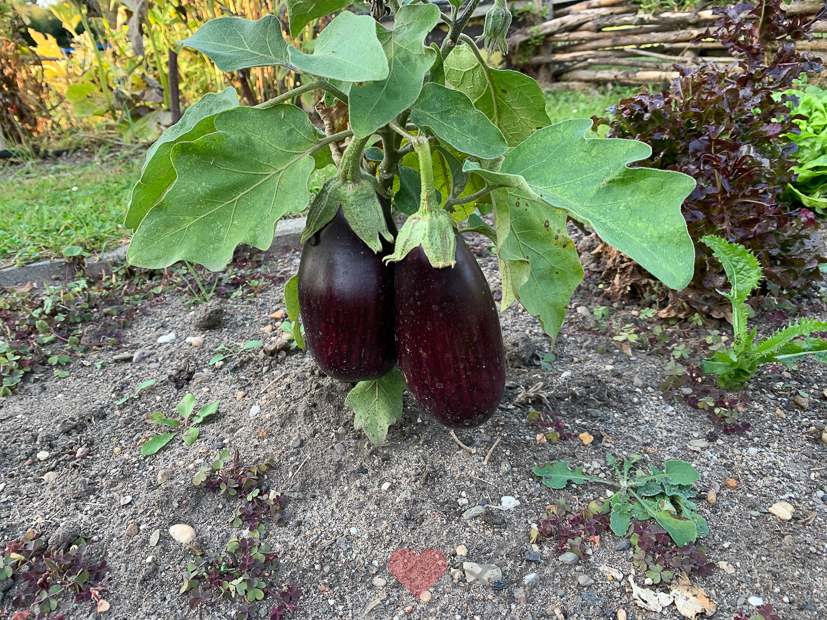 - Onze hele aubergineoogst van het jaar, maar liefst twee stuks!