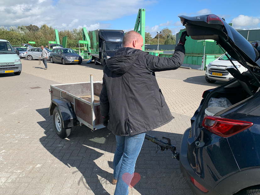 Johan is vrij vandaag. ’s ochtends werken we op kantoor en rommelen wat in huis. Na de lunch rijden we samen naar de Avri om een kar vol rotzooi weg te brengen. Daarna halen we in de buurt openhaardhout op zodat we thuis het houthok weer kunnen vullen.