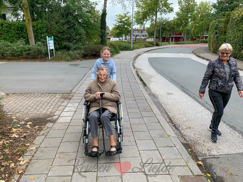 Johan zijn moeder is morgen jarig maar we gaan vandaag op visite. Aan het eind van de ochtend rijden we naar ze toe. Sinds kort zit Johan zijn oma in het zorgcentrum in Tiel, vlakbij het huis van Johan zijn ouders. Terwijl Johan en zijn vader de F1-race zitten te kijken, lopen mijn schoonmoeder, Ella en ik naar het zorgcentrum om haar op te halen.