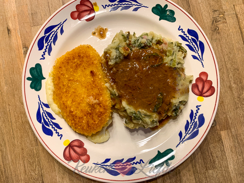 ’s Avonds eten we nog een kliekje andijviestamppot en stoofvlees (of eigenlijk jus want het meeste vlees was eruit). We bakken er alleen een kaasschnitzel bij. Het ziet er misschien niet uit, maar smaken deed het! Prima maaltje voor een grijze maandagavond. We eten met het bord op schoot voor de tv, want premier Rutte houdt weer een toespraak over de voorlopig nieuwe en strengere coronamaatregelen. Na de toespraak krijgt Johan van zijn werkgever te horen dat hij de komende drie weken weer thuis moet werken. Hopelijk lukt het met deze maatregelen om het coronavirus weer onder controle te krijgen en kunnen de maatregelen straks weer versoepeld worden. En hopelijk blijven de scholen open! Fingers crossed! #ikdoewelmee Jij toch ook?