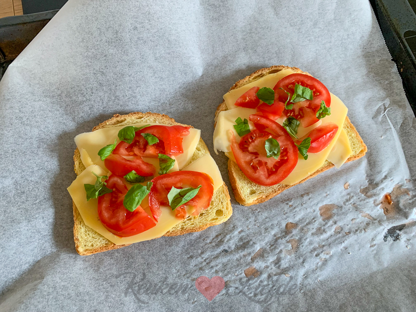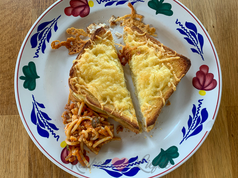 - Tosti als lunch met kliekje opgewarmde pasta