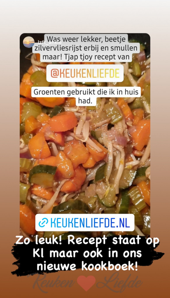 Wil je niks missen? Volg onze stories op Instagram! Heb je zelf ook een leuke foto gemaakt van een KeukenLiefde-gerecht? Tag KeukenLiefde op social media, of deel je foto met #keukenliefde. Dan kan ik je foto delen!