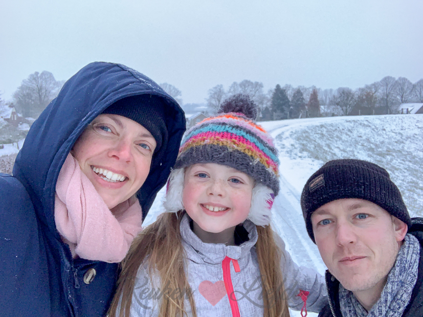 Maar voordat we aan tafel gaan lopen we eerst buiten een rondje door de vers gevallen sneeuw!