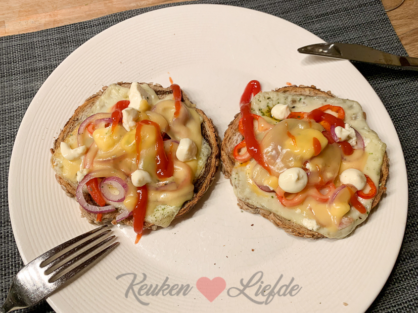 Ik maak ook nog wat pizza brood snacks voor het avondeten omdat het tomatenpannetje net te weinig is voor ons drieën.
