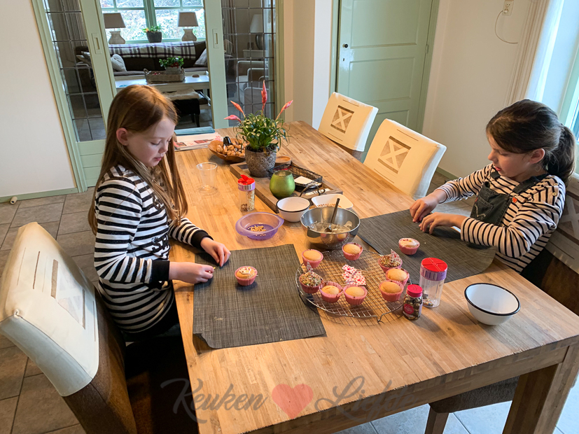 ’s Middags komt er een vriendinnetje van Ella-Marie spelen en mogen de dames cupcakes bakken en versieren. Ik word zonder pardon de keuken uitgestuurd want de dames ‘kunnen het zelf wel’. #kleinemeisjeswordengroot