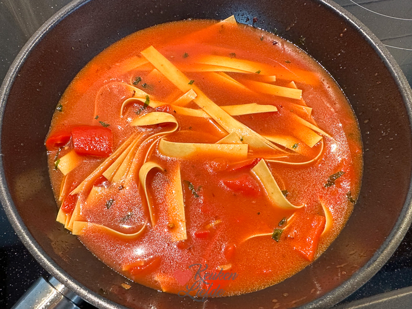 - Verse lasagnebladen in tagliatelle snijden…
