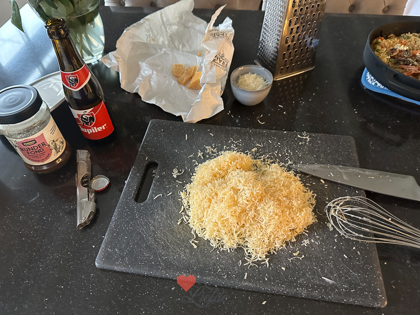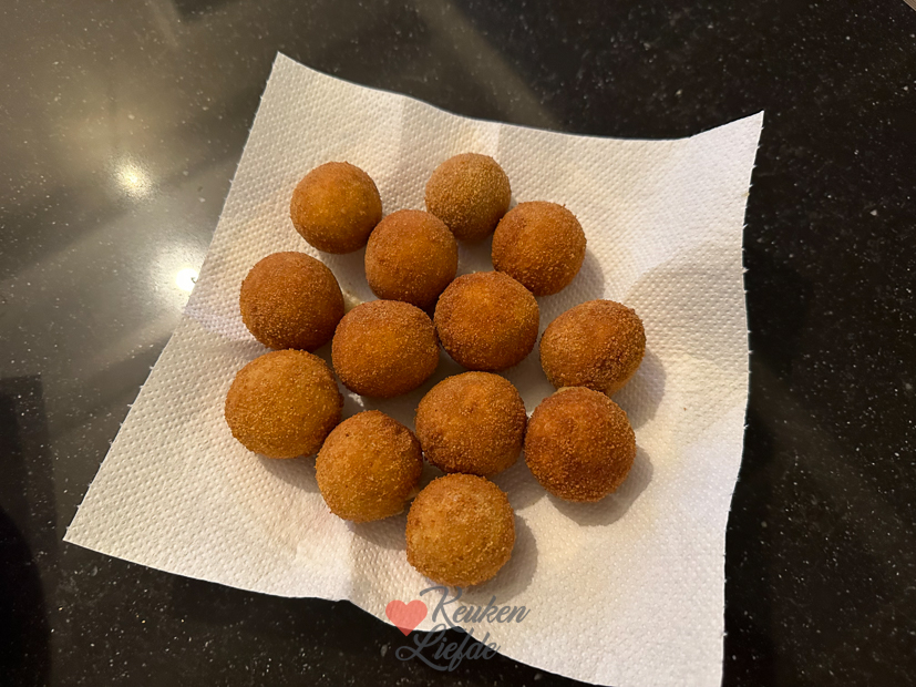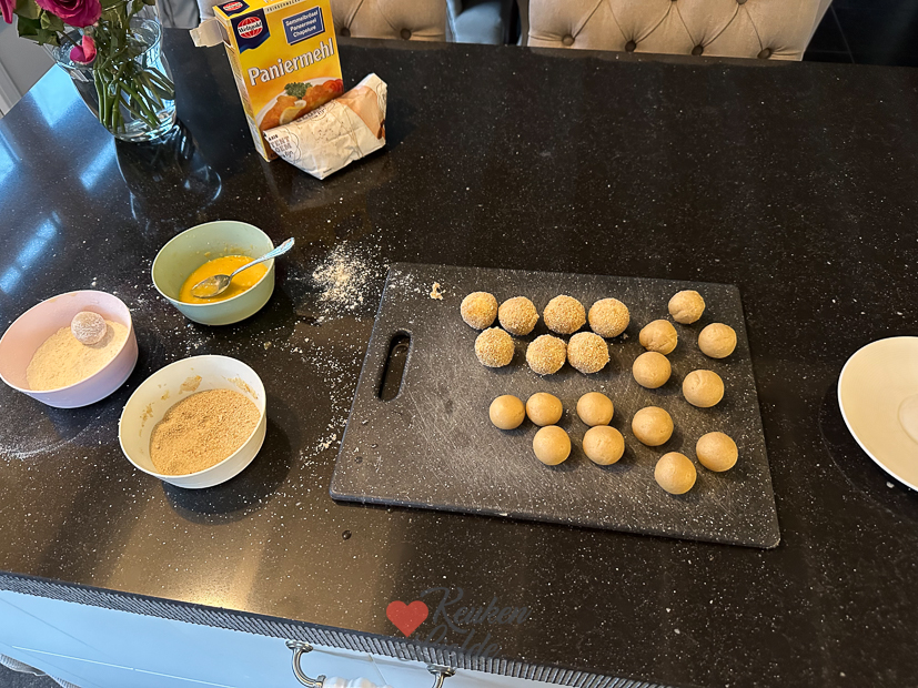 Een nieuwe week. Let’s gooooo! Zodra Johan en Ella-Marie de deur uit zijn nestel ik mezelf met een mok cappuccino op kantoor achter de computer. Als alles wat moet gebeuren gedaan is ga ik naar de keuken. Er moeten bitterballen gemaakt worden en ik kan niet wachten om ze te proeven. Ik kon uiteindelijk 20 balletjes draaien en paneerde elk balletje drie keer dus ik was wel even bezig… 🥴 Maar ze waren elke paneerlaag dubbel en dwars waard! Zo lekker! Ik was ’s avonds redelijk gaar van het rollen, paneren, frituren, fotograferen en opruimen dus was blij dat er nog risotto in de koelkast stond om op te warmen. Thank god voor kliekjes!