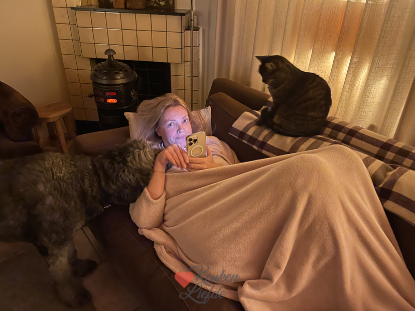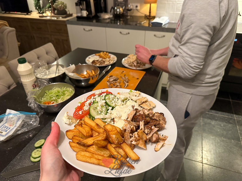 Ella zou eigenlijk een voetbalwedstrijd hebben maar die werd last minute afgelast vanwege het slechte veld. Een mooie gelegenheid om iets langer op bed te blijven liggen. Niet heel lang, want er is genoeg te doen. Vandaag staan er wat klusjes op de planning zoals het verplaatsen van de wasmachine en droger van de keuken naar de bijkeuken. Binnenkort wordt de kastenwand in de keuken geplaatst en deze komen daar niet in. De bijkeuken wordt hun vaste plek maar zoals je ziet moet hier nog wel flink verbouwd worden. Alles op zijn tijd. Eind van de middag wordt er weer lekker gewandeld en daarna gaat de houtkachel aan. Voor het avondeten grillen we gemarineerde kippendijen op het ovenspit en serveren die met frietjes, een salade van spitskool, ui, ijsbergsla, tomaat, komkommer en feta en zelfgemaakte knoflooksaus. Ik deelde er stories van op IG en Steel reageerde daarop dat we de volgende keer het bakpapier weg moeten laten en het bakblik moeten vullen met water. Zo blijft de kip sappiger. De kip was supersappig maar de volgende keer gaan we dat zeker uitproberen. Het was de eerste keer dat we het ovenspit uitprobeerden en we vonden het een groot succes. Verder keken we ’s avonds met z’n drieën de film Ticket to Paradise. Erg leuk vonden wij!