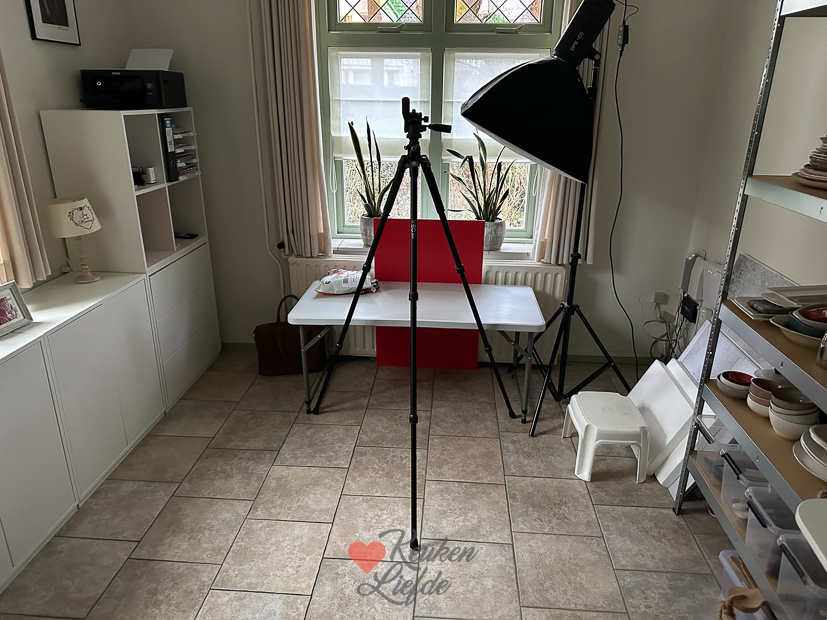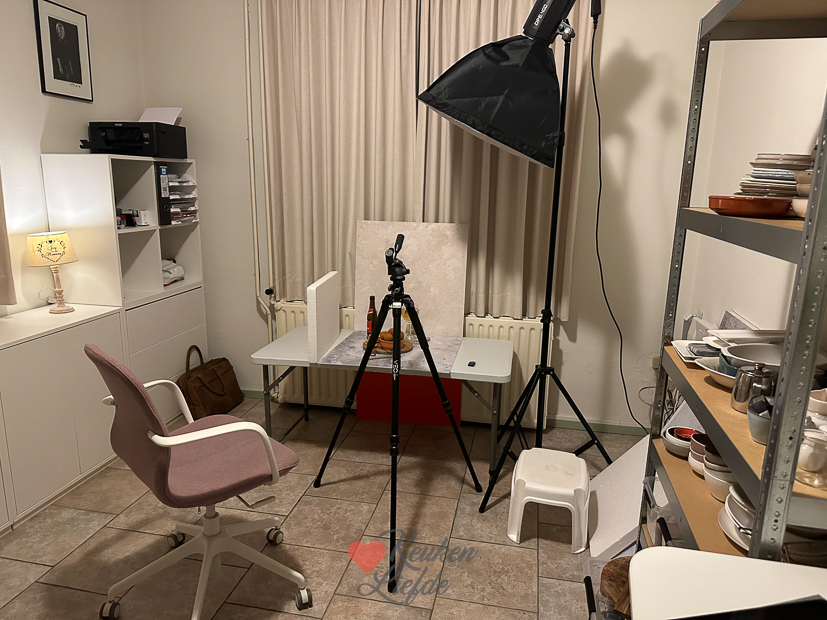 - Nog niet de ideale opstelling maar in deze ruimte ga ik voortaan fotograferen