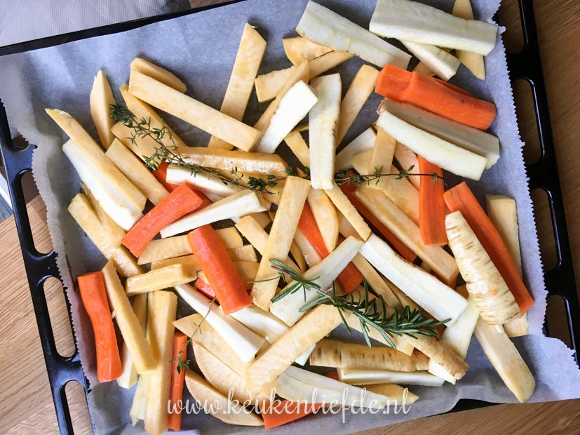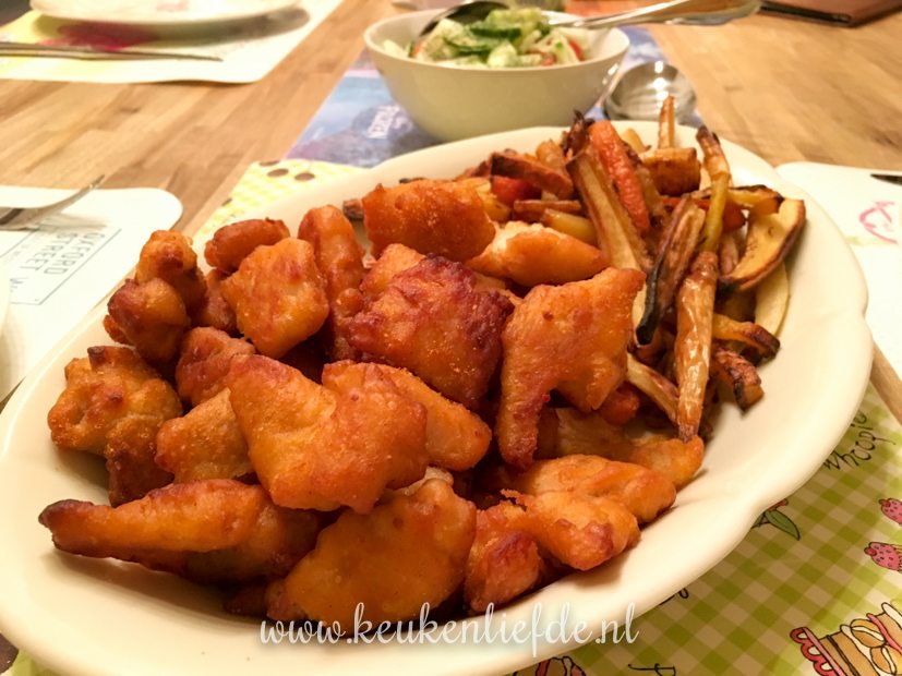Na het maken van de gezonde kapsalon maakte ben ik fan van groentefrietjes uit de oven. Vandaag staan ze weer op het menu, maar dit keer serveer ik ze met kibbeling, ook uit de oven. Erbij serveer ik wat ijsbergsla en zelfgemaakte remouladesaus. Jam! Trouwens, dit is een heel lekker recept voor zelfgemaakte kibbeling!