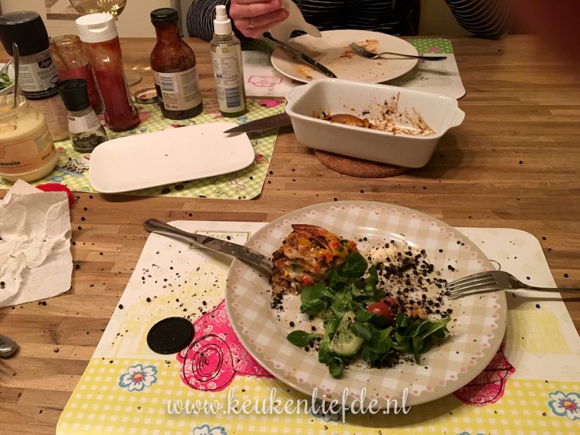 ’s Avonds hoef ik niet te koken, want er is nog een stuk Mexicaanse wraptaart over en erbij eten we broodje knakworst. Haha, wat een combi. Maar het smaakt prima.