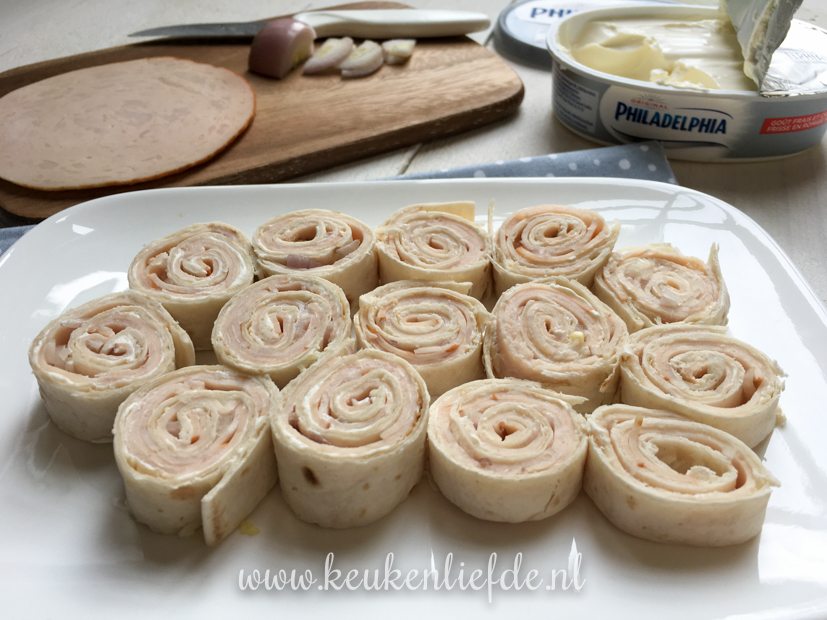 Tussendoor maak ik ook nog deze wraprolletjes met kipfilet en roomkaas. Het recept is van mijn schoonmoeder. Ze maakt dit hapje altijd op verjaardagen waar ze gretig aftrek vinden. Het recept is supersimpel en ik ga het binnenkort met delen.