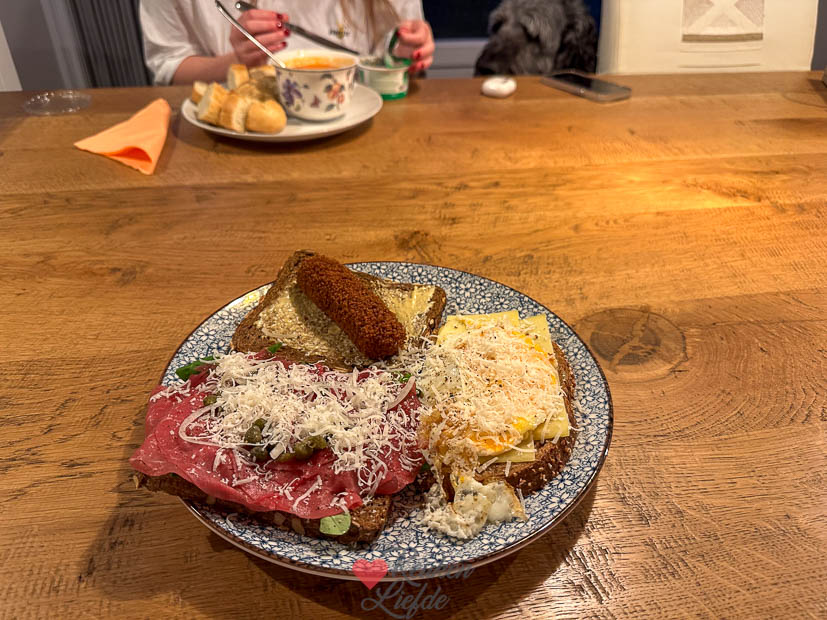 ’s Avonds had ik pompoensoep willen maken maar ik had helemaal geen zin meer om te koken. Gelukkig vond Johan het geen probleem om iets te maken. Hij maakte voor Ella-Marie snelle tomatensoep en voor ons een 12-uurtje als avondeten. We hebben heerlijk zitten smullen.