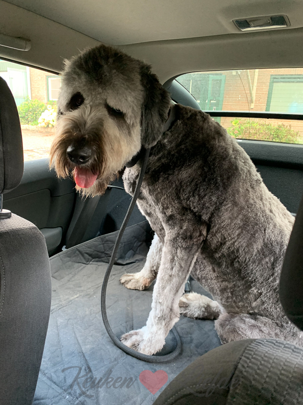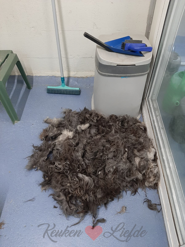 Samen met Ella-Marie haal ik hem eind van de middag weer op. De bolle, zwarte beer is verdwenen en een ranke, slanke hond is tevoorschijn gekomen! En zijn vacht is zo heerlijk zacht!