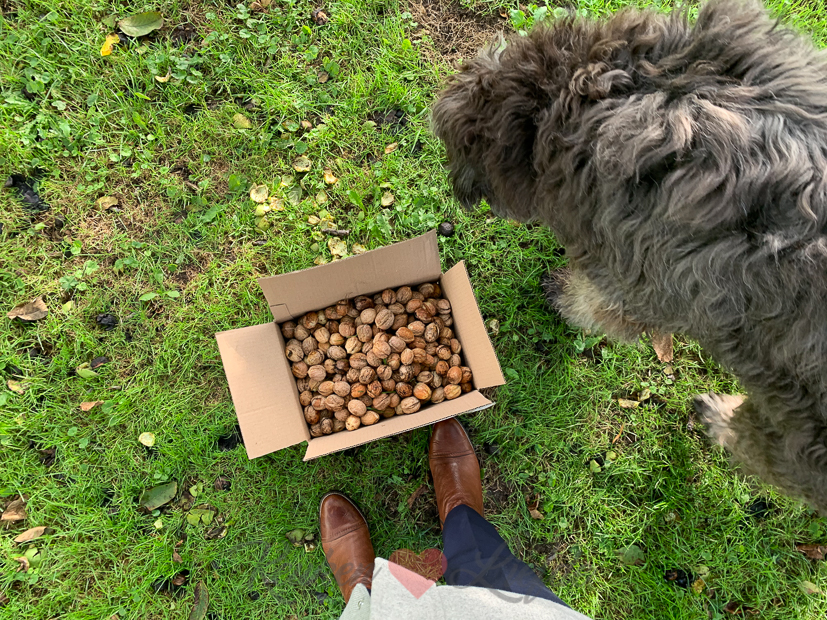 Johan zit vanaf vandaag tot en met donderdag in België voor zijn werk, dus Ella-Marie en ik hebben het rijk alleen met de hond en katten. Voordat we ’s avonds gaan eten rapen we buiten walnoten. Elke dag een doos vol. We hebben trouwens een walnotenraper besteld op internet, waardoor je niet meer hoeft te bukken. (Ik word volgende maand tenslotte ook alweer veertig!) Even kijken of het wat is. Ik laat het jullie weten!