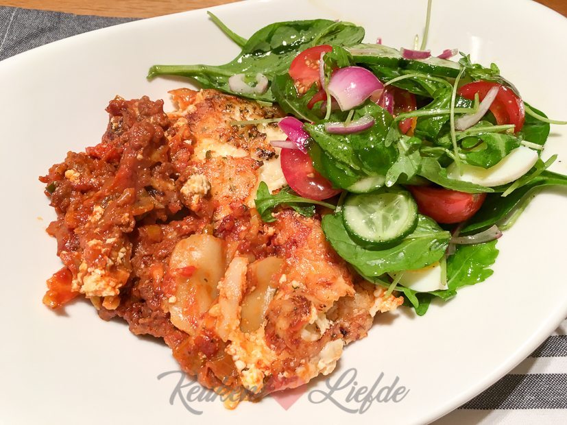 Er staat lasagne op het menu! Dochterlief loopt er nog niet echt warm voor maar voor Johan en mij is lasagne hét ultieme comfort food. Zet een dampend bord lasagne met salade voor me neer en al mijn problemen en zorgen verdwijnen als sneeuw voor de zon. Niet dat ik die heb trouwens. 😉