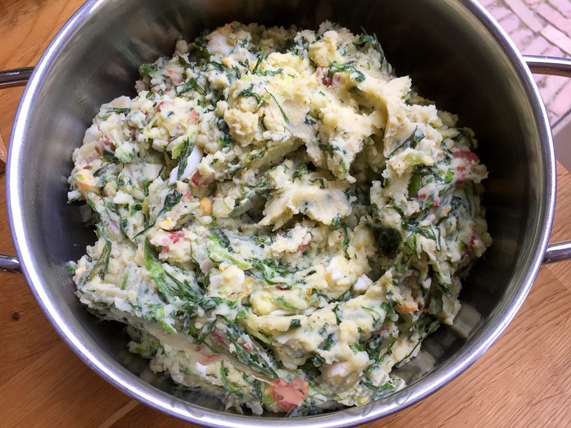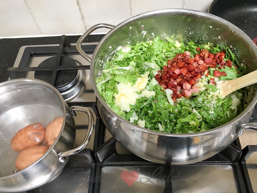 Voor het avondeten maak ik nog een keer andijviestamppot, maar dit keer eten we hem zelf op. Ik bak er ook nog gehaktballetjes bij.