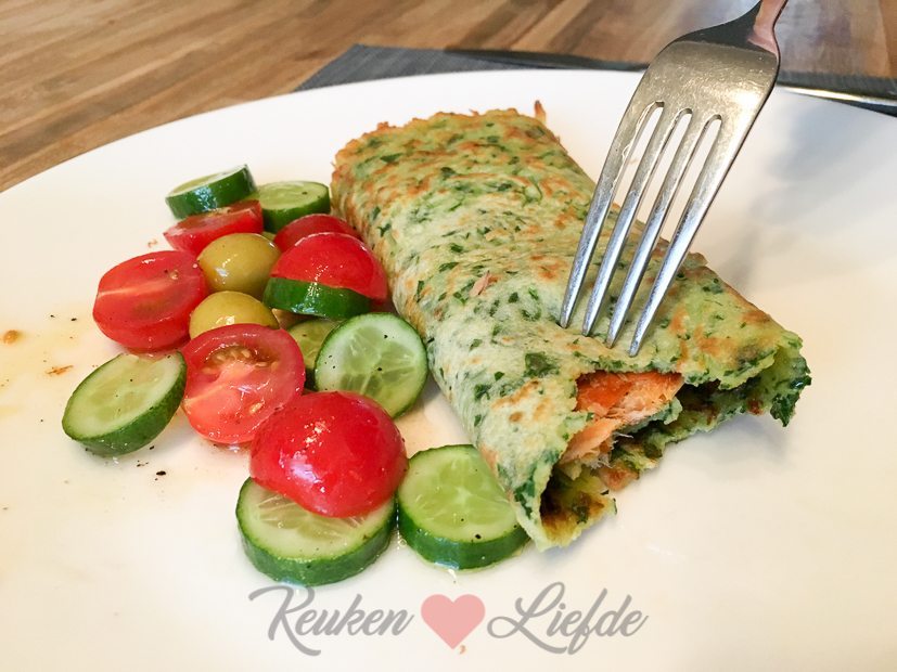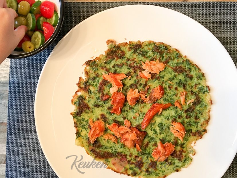 Voor het avondeten maak ik spinaziepannenkoeken met zalm en salade. De spinaziepannenkoeken maakte ik voor een campagne die ik binnenkort met je ga delen. Daarvoor belegde ik ze wel op een andere manier. Het recept komt eraan!
