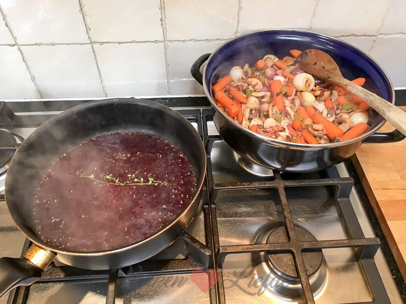Vanavond komt een vriend bij ons eten. Ik begin ’s ochtends met de voorbereidingen. Ik bak een appel-speculaastaart (recept volgt) die vanavond als toetje op tafel komt en maak coq au vin voor het hoofdgerecht.
