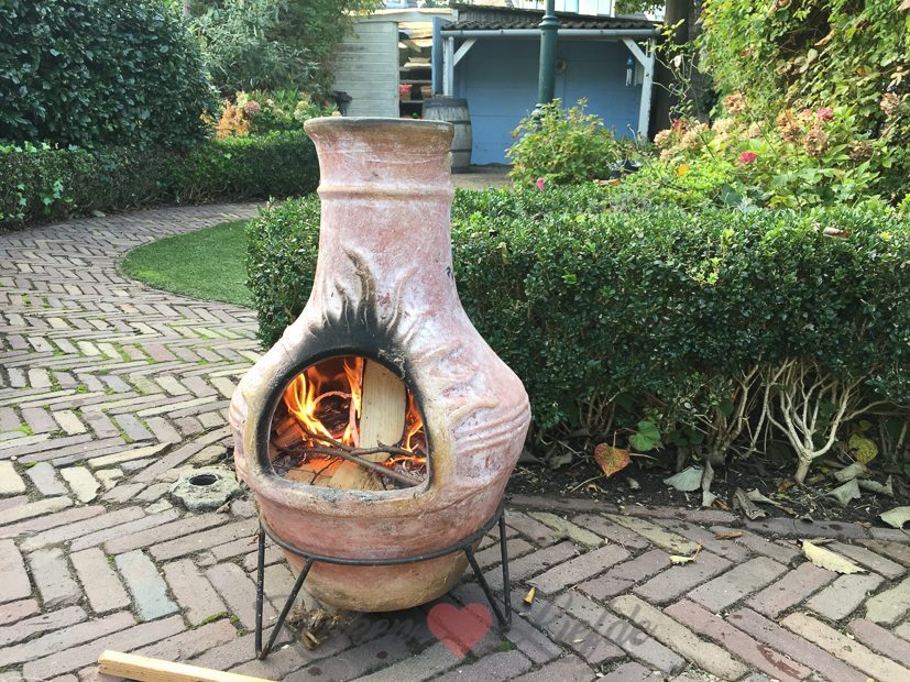 Voordat we ’s avonds aan tafel gaan genieten van we buiten in de tuin van het mooie weer en steken we de vuurkorf aan.