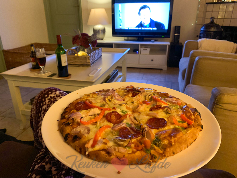 - Filmpje, pizza en chillen maar!