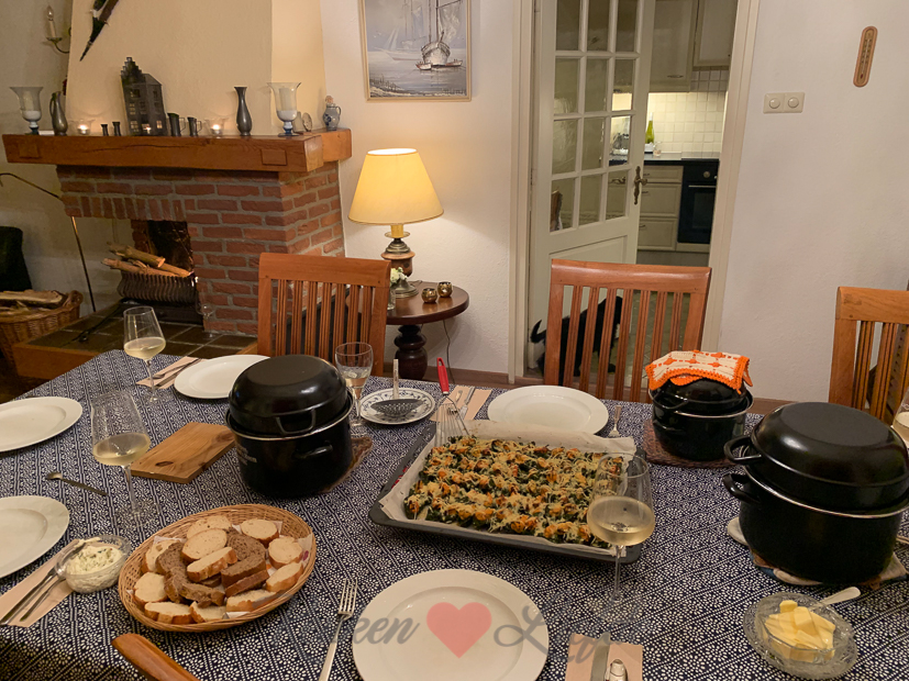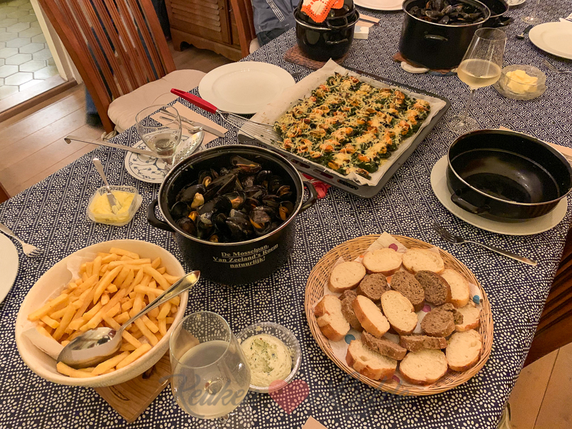 Mijn ouders maken altijd mosselen op twee manieren: gekookt in bier en gegratineerd van het bakblik. Het recept voor de gegratineerde mosselen met spinazie en kaas van het bakblik deelde ik eerder al op KL en vind je hier. Echt een aanrader! De wijn paste er perfect bij.
