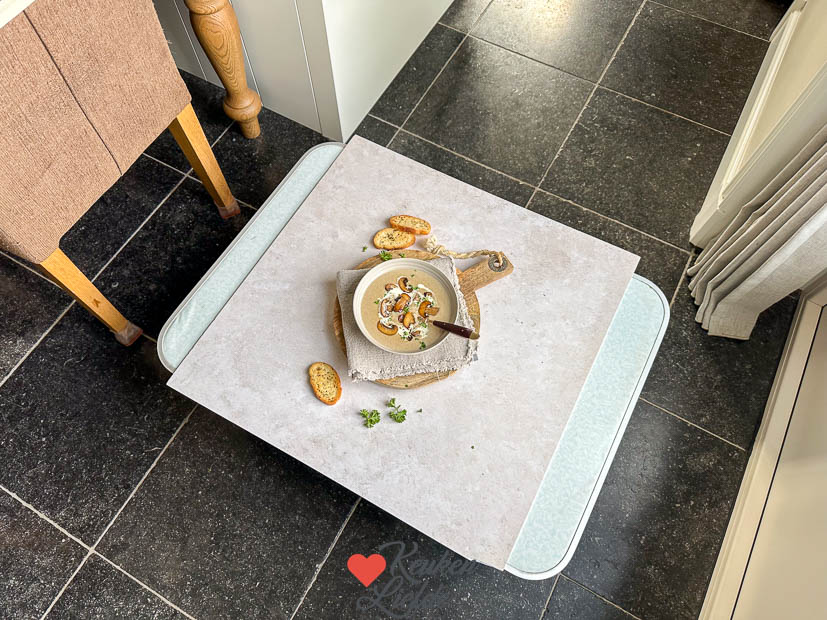 Het weekend is in zicht! Overdag wordt er nog gewerkt en maak ik champignonsoep en zet die op de foto. Ik warm het ’s avonds opnieuw op als avondeten en maak er panini’s bij.