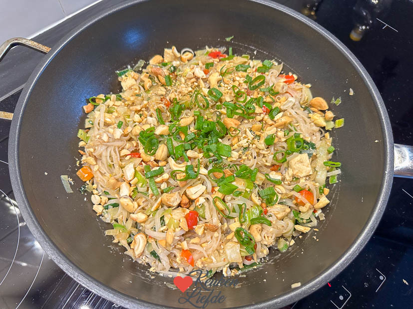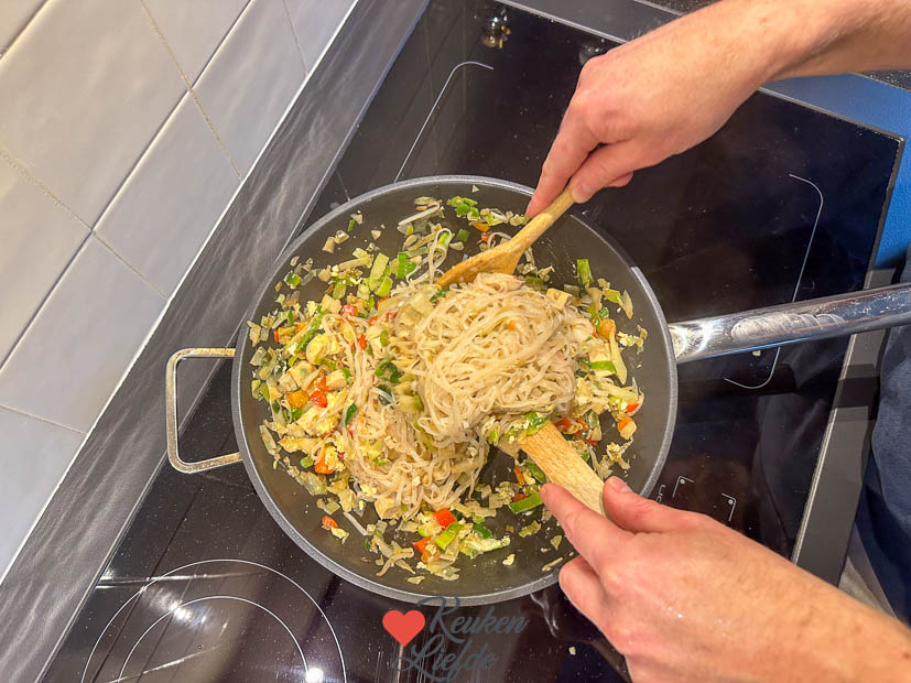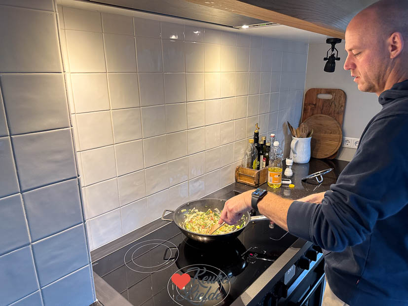 Als Johan ’s avonds weer thuis is gaan we samen een boodschapje doen voor het avondeten. Daarna maken we de Thaise pad thai uit ons kookboek Makkelijke Wereldgerechten. In ons boek staat een variant met garnalen maar ik maakte dit keer een vega variant en verving de garnalen door tofu en de taugé verving ik door een zak gesneden wokgroenten waar ook taugé inzit. Was heerlijk!