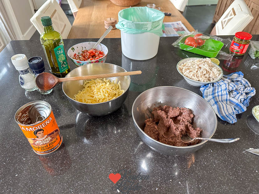 Ik zet een artikel online en daarna ga ik naar de winkel om wat boodschappen te doen. Als alle boodschappen zijn opgeruimd ga ik meteen aan de slag met een nieuw recept. Ik maakte Mexicaanse enchiladas met kip. Ze zijn ’s avonds ook ons avondeten en dan serveer ik ze met refried beans (gebakken en gestampte bonen), tomatenrijst en pico de gallo.