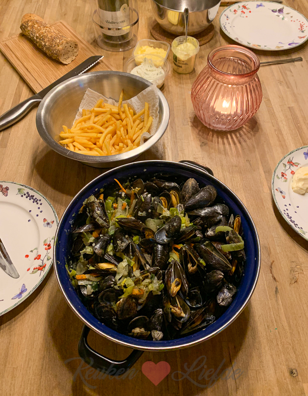 Gisteren aten we nog een keer spaghetti bolognese, vandaag heb ik zin in mosselen. Met stokbrood en zelfgebakken frietjes erbij. Lekker mosselwijntje erbij en smullen maar!