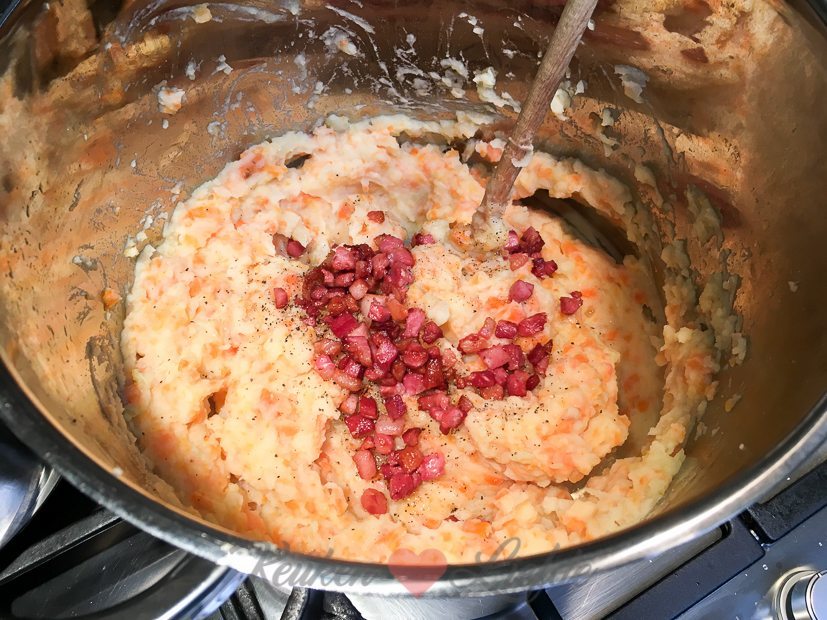 Johan gaat met Ella-Marie naar een uitwedstrijd voor de voetbal en ik ga thuis aan de slag met stamppot. Vanavond is het stamppotbuffet voor de verjaardag van mijn moeder en ik heb beloofd om twee stamppotten en rookworsten mee te nemen. Ik maak hutspot en andijviestamppot.