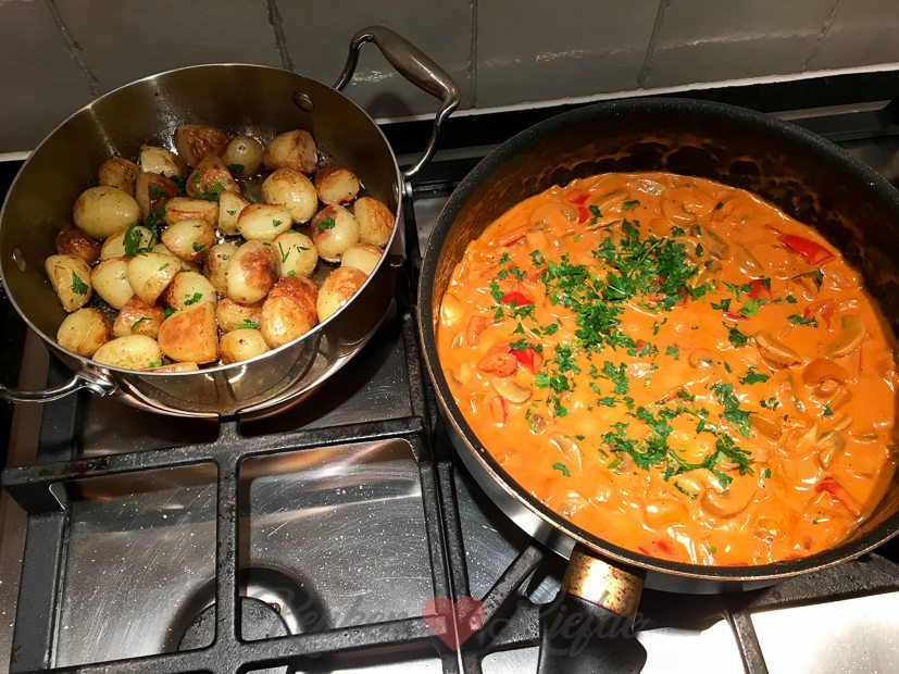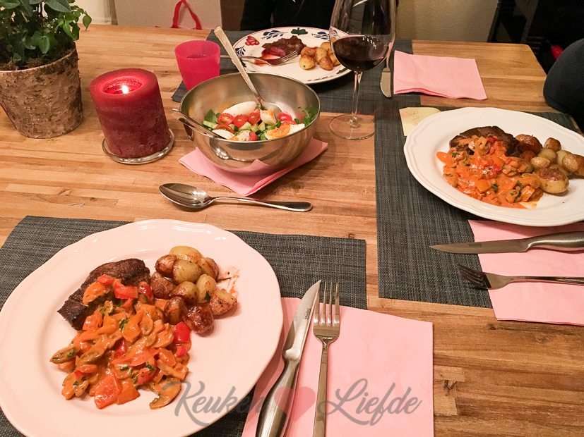 Ik mijn mailbox zie ik een slagersaanbieding binnenkomen van slagerij Augustines in Tiel: 3 biefstukjes voor 7,50 euro. Precies waar ik zin in heb vanavond! Als ik El naar school heb gebracht ga ik ze meteen halen. ’s Avonds eten we gebakken biefstuk en krieltjes in de schil en stroganoffsaus.