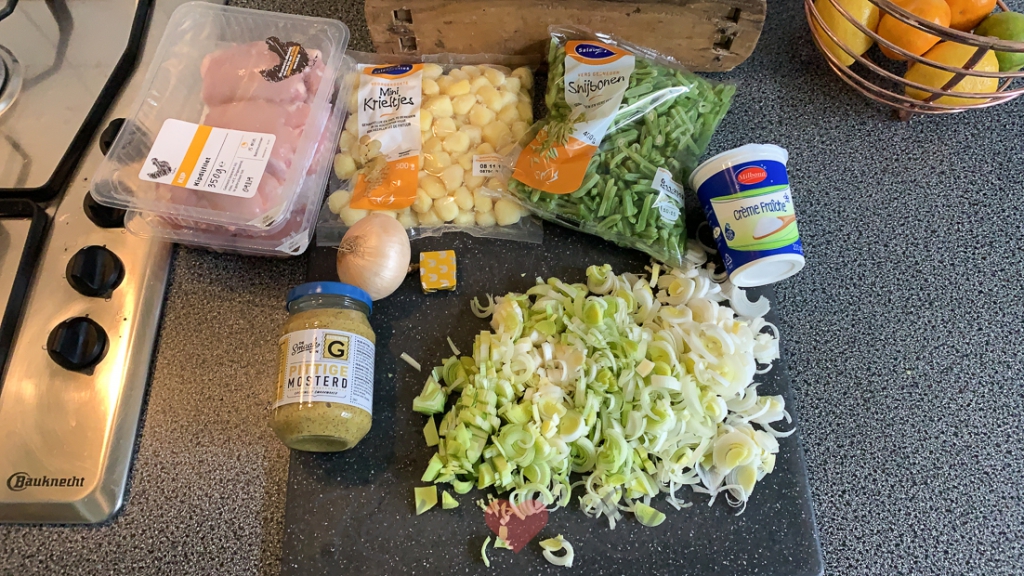 Ik sta weer in de keuken om twee sinterklaasrecepten te maken voor KL. Daarna maak ik het avondeten. Een tijdje geleden las ik bij mijn moeder het woon- en lifestyle magazine Entree. De rubriek ‘aan tafel’ is een van de vaste rubrieken van mijn vriendin Miranda en dit keer deelde ze een recept voor snelle kipstoof in romige mosterdsaus. Vandaag staat hij op het menu!