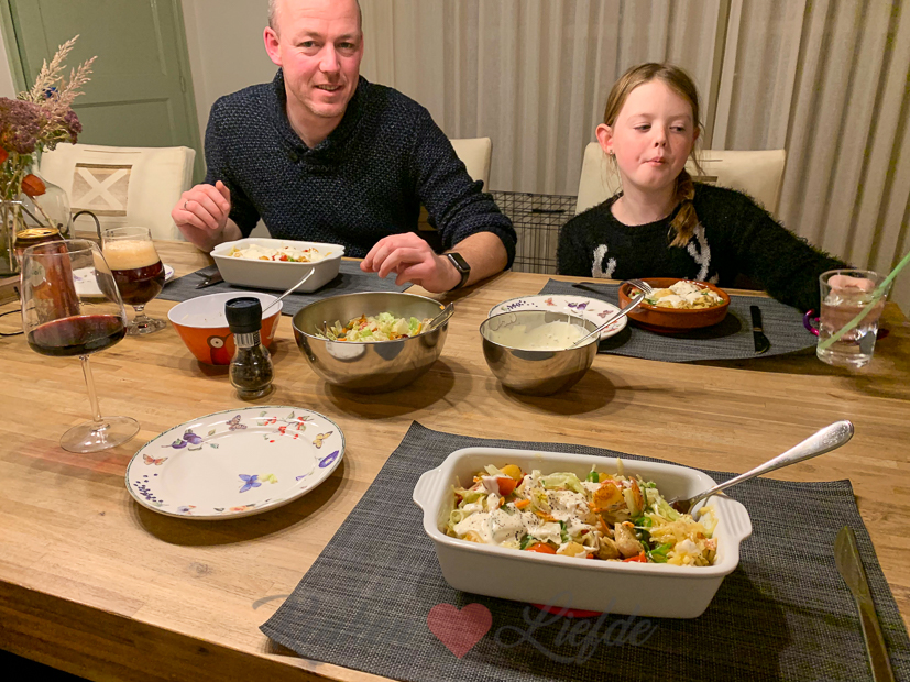 ’s Middags bak ik een cheesecake (recept volgt) en wordt er gepuzzeld. Johan maakt ’s avonds een heerlijke kipsalon (dit recept).
