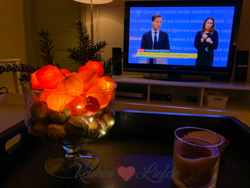 Na het eten snel alles opruimen en op bank de persconferentie van Rutten kijken. Na het sluiten van de horeca moeten nu ook bibliotheken, theaters, bioscopen, enz. weer sluiten door corona. Wat een enorme klap weer voor alle ondernemers! ?