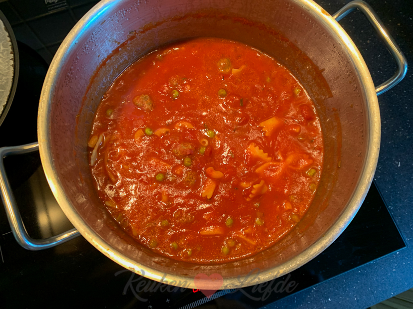 Vrijdag haal ik Ella-Marie op uit school en breng haar gelijk door naar mijn ouders. Ze mag twee nachtjes blijven logeren! Zoals gewoonlijk staat er een pruttelende pan op het fornuis in de keuken van ons mam. Dit keer een goed gevulde tomatensoep met pasta en ballen!
