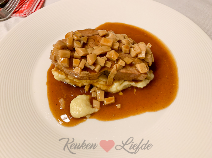 - Sukade met jus, paddestoel, aardappelpuree en witlof