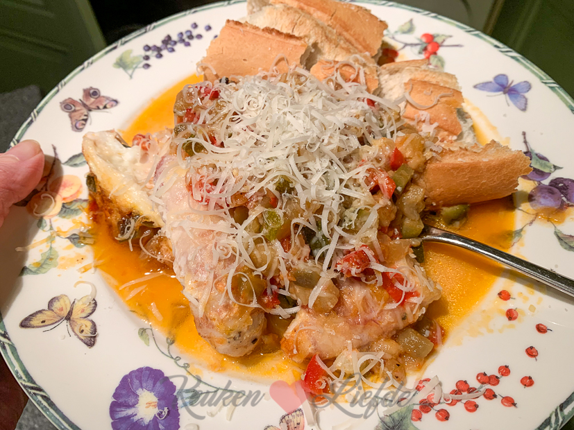 Ik krijg een mooi kookboek thuisgestuurd: Zilt. Een inspirerend kookboek met 75 recepten met zilte groenten (denk aan zeekraal, lamsoor, oesterblad en zeewier), inclusief moestuin- en teeltips. Ik ga hier zeker iets uit maken (zodra we weer een keuken hebben). Voor het avondeten haalde ik ’s ochtends bakken met eten uit de diepvries: verse tomatensoep en ratatouille. De tomatensoep is voor één persoon en warm ik op voor Ella met wat stokbrood erbij. De ratatouille schep ik in een ovenschaal en warm ik op in de oven van de combi-magnetron. Ik breek altijd een ei in de ratatouille om mee te garen en serveer hem dan met stokbrood erbij. Ik had ook nog 3 kipfilethaasjes met pesto en met spek omwikkeld uit de diepvries gehaald en die leg ik ook boven op de ratatouille om mee te warmen. Het ziet er misschien niet zo smakelijk uit maar het was zó lekker. Ratatouille en lasagne, daar mag je me echt voor wakker maken. Beide recepten vind je trouwens ook in ons nieuwe kookboek ‘Familiegerechten‘. 😋
