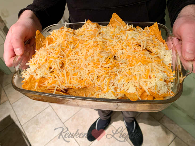Terwijl Johan met Ella op het voetbalveld staat, sta ik in de keuken van mijn ouders kerstrecepten voor KeukenLiefde te maken. De dag vliegt voorbij. Als iedereen weer thuis is maken we een lekkere wandeling met Nacho. Daarna maakt Johan voor het avondeten de Mexicaanse ovenschotel met kip en nacho’s. Ella maakt de guacamole en yoghurt-avocadodressing en ik hoef helemaal niks te doen. Genieten!