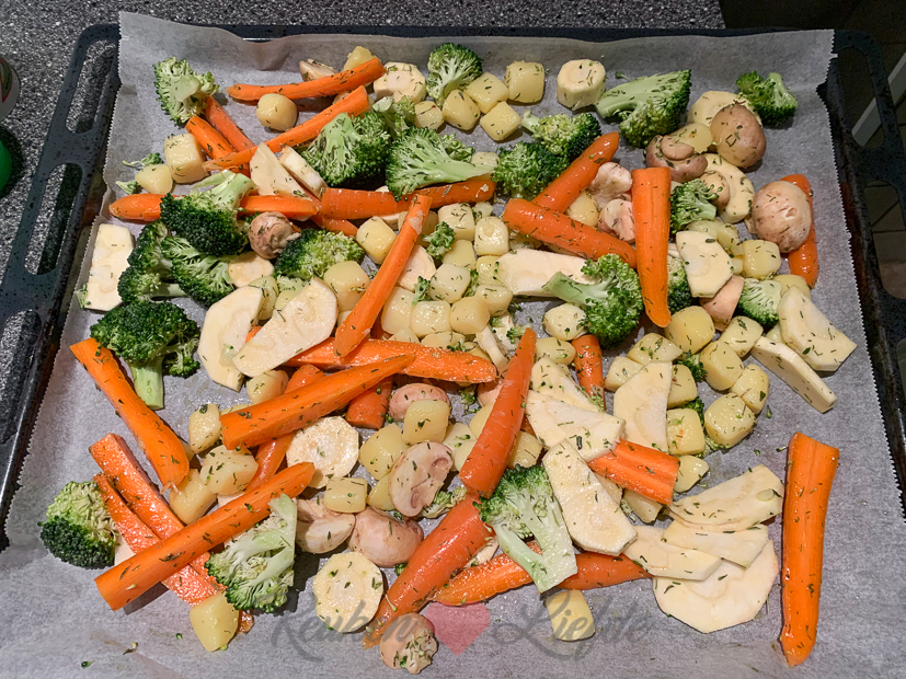 Ik ben niet vooruit te branden vandaag. Na het schrijven en publiceren van het wekelijkse Kijkje in de keuken deel ik een video in onze IG-stories van het resultaat van de keuken na het schilderwerk. Niet veel later komt Ella-Marie alweer uit school. Er moeten nog wat boodschappen gehaald worden en Ella gaat gezellig met me mee. We rijden ook even langs de Action om te kijken of ze de kralendoos weer op voorraad hebben die Ella zo graag wil. Iedere keer grijpt ze mis maar dit keer liggen er voldoende. Weer thuis ga ik de keuken in voor het avondeten. Ik snijd wat groenten (wortel, pastinaak, broccoli en champignons) voor op het bakblik, gooi er wat krieltjes bij en hup, schuif hem de oven in. De laatste 12 minuten leg ik er vissticks bij. Die worden niet zo krokant omdat ze op de groenten liggen maar het smaakt prima. Na het avondeten komt Johan zijn vader helpen om de keukenblokjes weer op zijn plek te zetten en alles aan te sluiten. Zo kunnen we voorlopig weer uit de voeten.