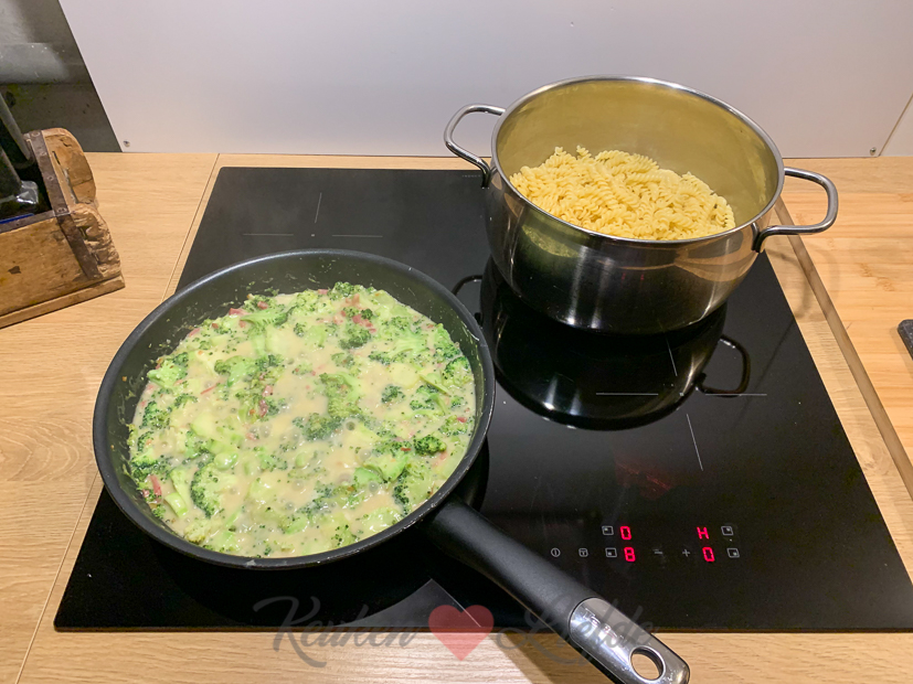 Als Johan en Ella weer de deur uit zijn werk ik een paar uurtjes op kantoor. Daarna ga ik aan de poets. Na weken in de rommel gezeten te hebben is het fijn dat we nu de keuken weer kunnen gebruiken en om alles schoon te maken. ’s Avonds kan ik voor het eerst sinds weken weer koken in een schone keuken. Ik maak een lekkere pasta met spekjes, broccoli en kaassaus. Die maak je zo: Spekjes in koekenpan langzaam uitbakken tot ze beginnen te kleuren, dan uitje en knoflook erbij en even meefruiten. Pasta beetgaar koken. Broccoli fijnsnijden (stronk schillen, in plakjes snijden en ook toevoegen! Wat mij betreft het lekkerste deel van de broccoli) en samen met verkruimelde kippenbouillontablet toevoegen aan spek. Zakje kaassaus aanmaken met water (zoals omschreven staat op de verpakking) en toevoegen (in plaats van zakje kaassaus kun je ook kookroom, scheutje pastakookvocht en handje parmezaan gebruiken). Aan de kook brengen en vuur lager zetten. Zachtjes laten koken tot broccoli beetgaar is. Pasta afgieten en door de saus roeren. Je kunt ook nog wat gehalveerde cherrytomaatjes toevoegen. Eet smakelijk!