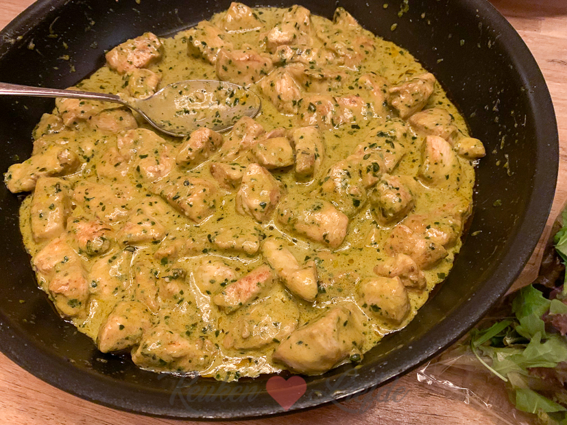 Het recept voor de kip in pestoroomsaus zou ik wel graag willen hebben!