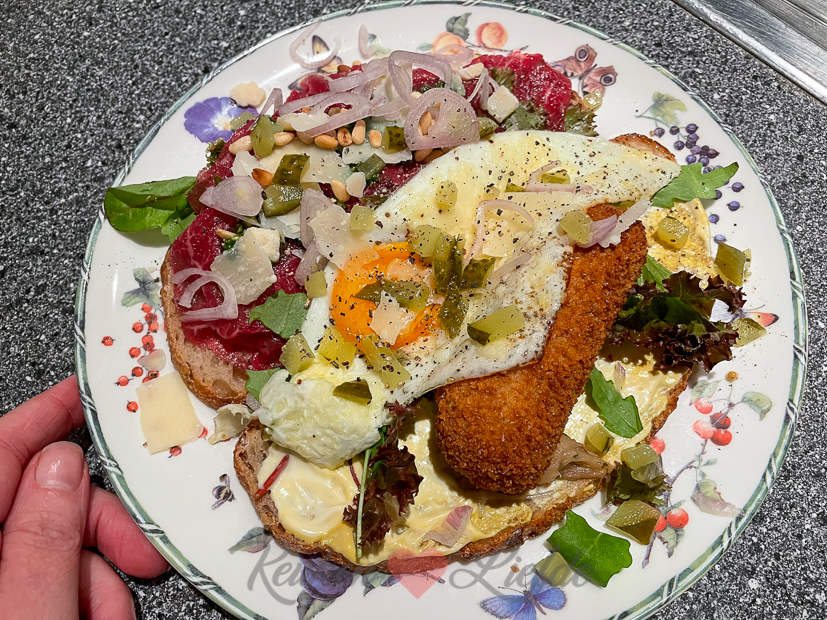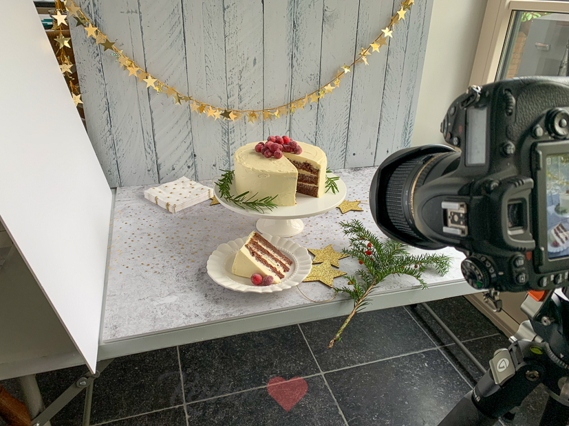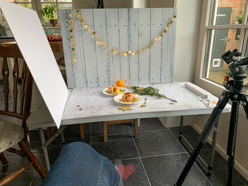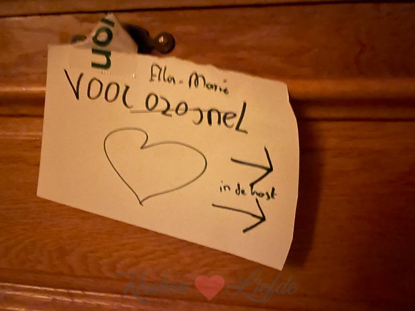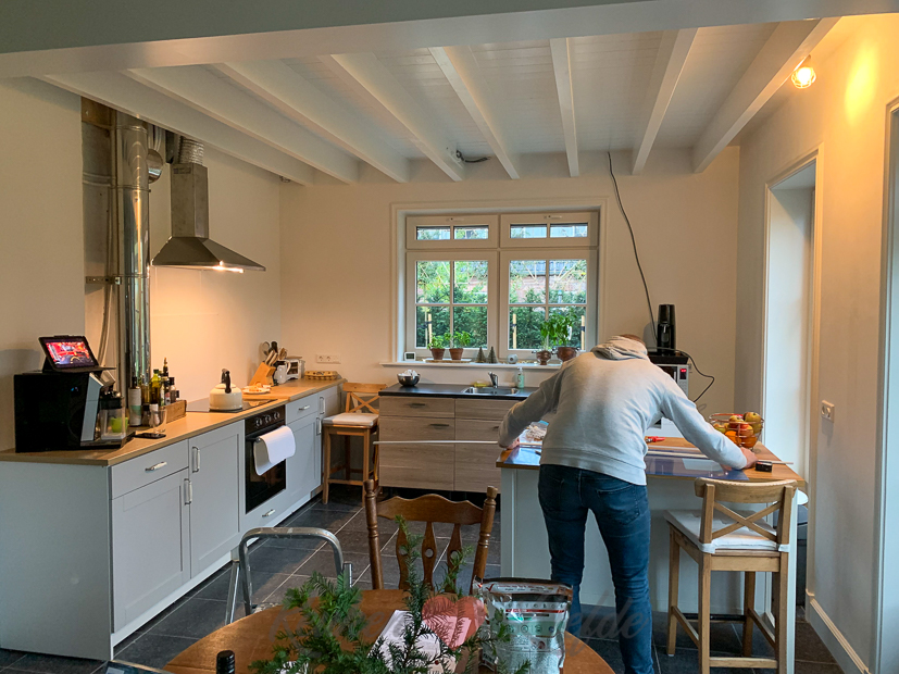 Terwijl Johan en Ella op het voetbalveld zijn, sta ik weer in de keuken. Ik maak nog een nieuw recept en leg de laatste hand aan de taart die ik gisteren maakte. Daarna zet ik ze op de foto en ruim de keuken weer op. Als Johan en Ella thuiskomen kunnen ze meteen een stukje taart proeven. De rest van de middag rommelen we wat in en rondom huis en kijken we de aankomst van Sinterklaas in Nederland op tv terug. Eind van de middag wordt er lekker gewandeld met Nacho en daarna kleden we ons om en steken de houtkachel aan. Het is nog steeds erg koud in huis omdat de vloerverwarming nog niet vol aan mag in verband met het drogen van de lijm. Het avondeten is simpel maar lekker: brood belegd met carpaccio, een ovenkroket en een gebakken ei. Na het eten kijken we de wedstrijd van het Nederlands elftal. Daar zullen we het verder maar niet over hebben… Oh en vooruit, de schoen mag ook gezet worden… Blijft toch leuk.