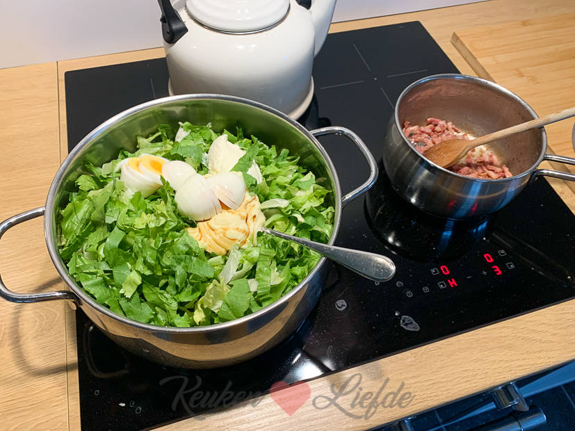 Na een aantal kookdagen bij mijn ouders thuis heb ik vandaag weer een kookdag in mijn eigen keuken. Ik ga onder andere aan de slag met een kersttaart. Als de keuken weer is opgeruimd ga ik meteen verder met het avondeten. Op het menu vanavond staat rauwe andijviestamppot met uitgebakken spekjes en gebakken speklap. Het plan was eigenlijk om Indische speklapjes in ketjapsaus te maken maar uiteindeijk had ik toch meer zin in een simpel gebakken speklapje. Zoetzure Amsterdamse uitjes maken het voor mij echt af. Het smaakte ouderwets lekker.