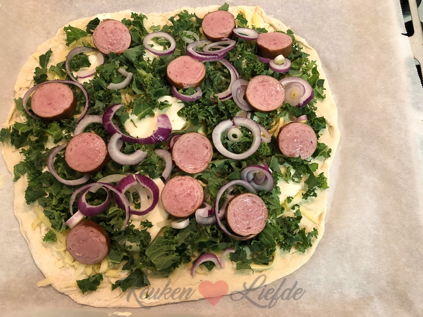 Ik had nog bolletjes pizzadeeg liggen, dus we eten vanavond weer pizza, maar dit keer maak ik een winterse variant met boerenkool en rookworst. Dikke vette aanrader! Het recept komt eraan.
