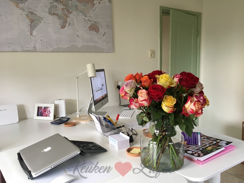 - De rozen krijgen een mooi plekje op kantoor, zodat ik er optimaal van kan genieten